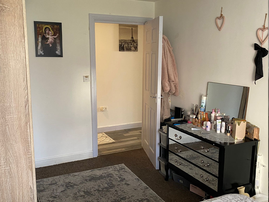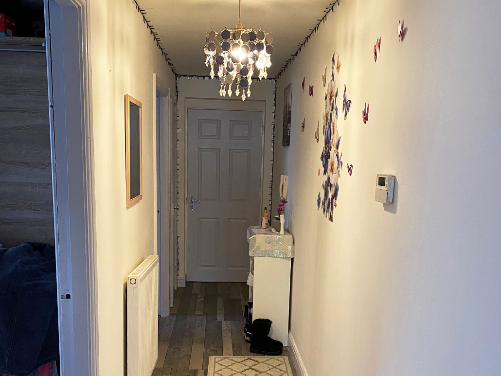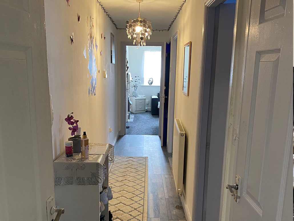 With door to the communal areas, leading to the bedrooms, bathroom and lounge.