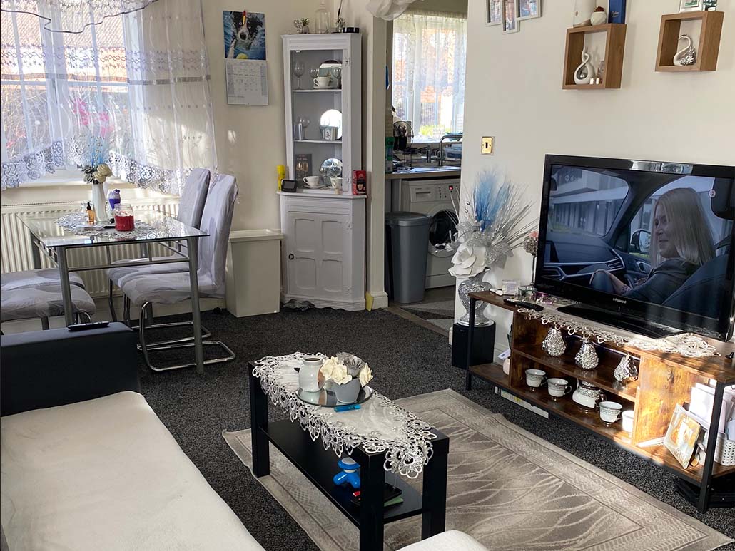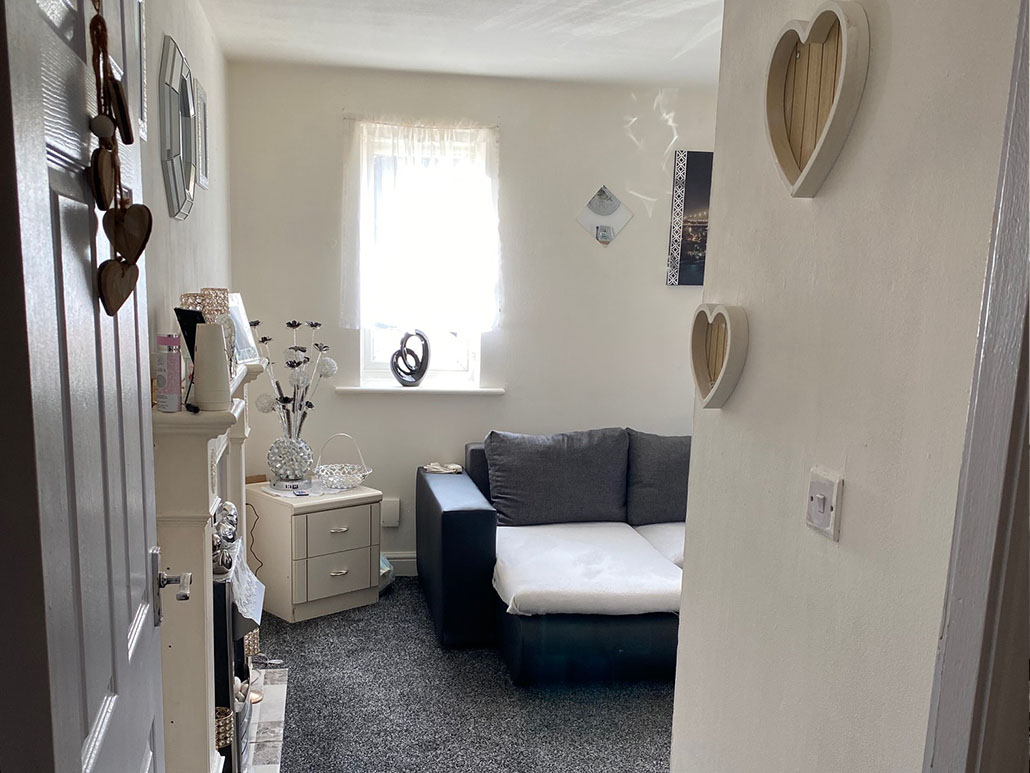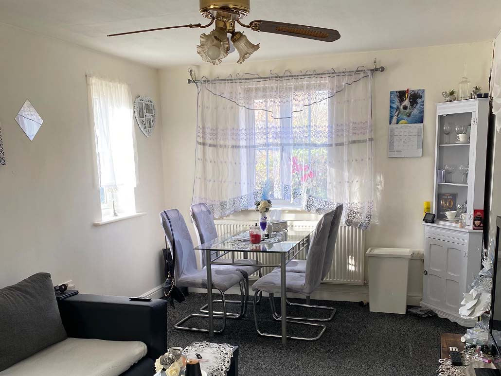 With a double glazed window to the front, radiator, tel and tv points and with the entrance to the kitchen.